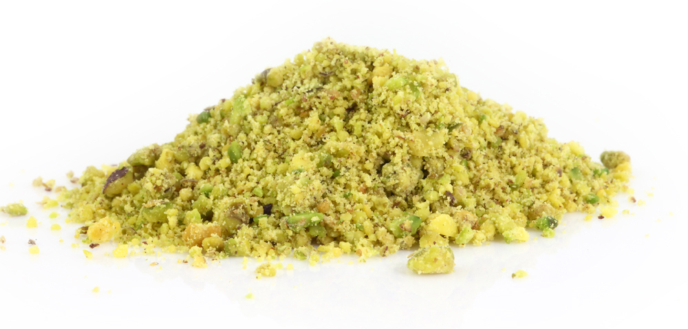 Pistachio flakes are the cold-pressed pistachio cake, lightly dried and coarsely milled.
